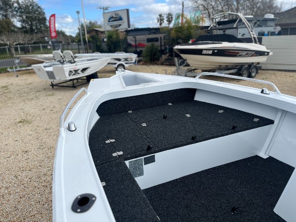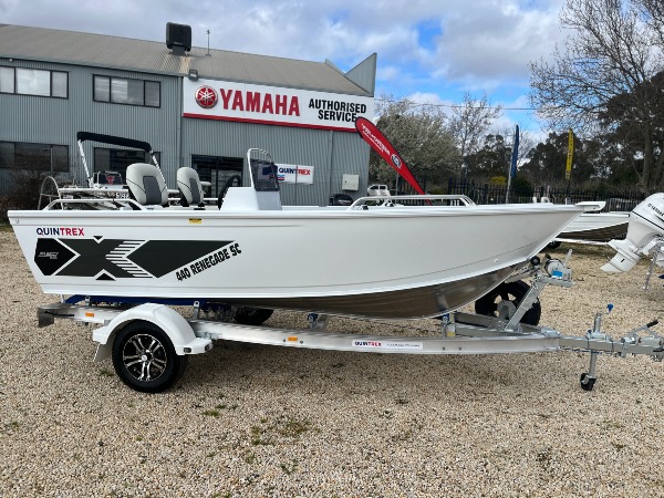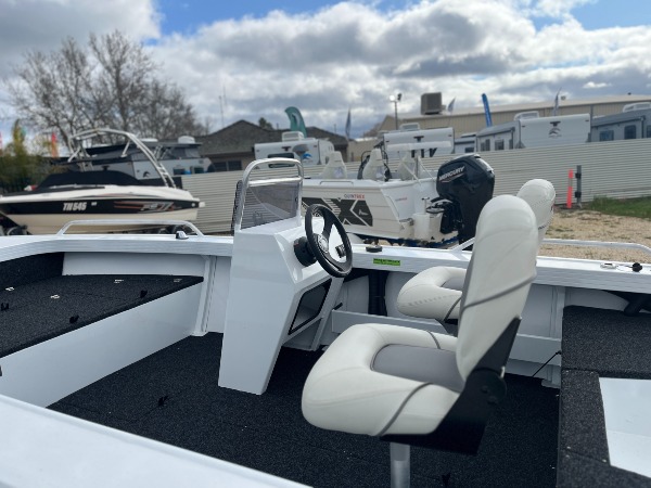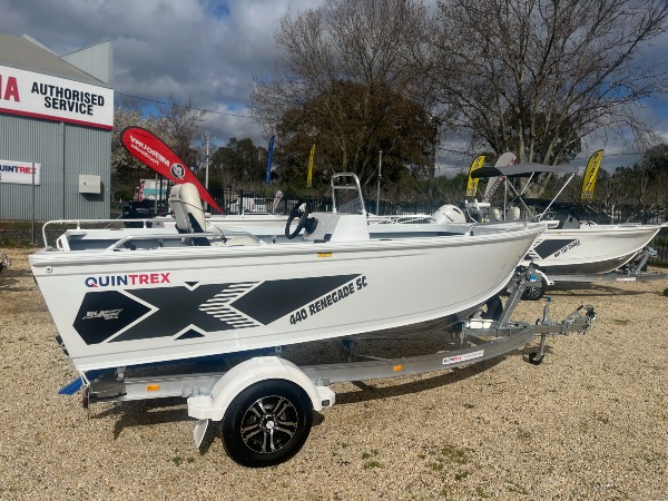 The 440 Renegade Side Console is the ultimate fishing vessel. Fitted with casting platforms and four rod holders, the 440 Renegade is built tough on an allow I-Beam trailer with a spare wheel and catch n release system to make unloading and loading a breeze. The Renegade is designed to handle reefs, estuaries, rivers and impoundments. With plenty of storage and enough room to hold up to 5 people onboard this boat is a no brainer! Having a spacious front casting deck, Port side Rod locker, rear cast deck with a livewell and a 50L underfloor fuel tank. Your choice of outboard Mercury or Yamaha this can handle up to 60HP.