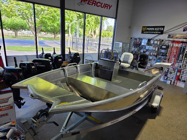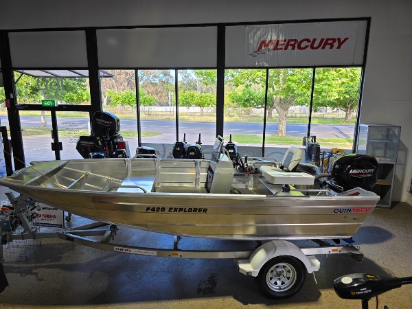 flat floor , fuel tank rack, mercury 40 hp , side console, esky, bow thruster plate for you minn kota front battery compartment, alloy trailer, bait board, huge beam on these 420 explorers $24500