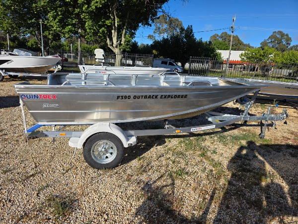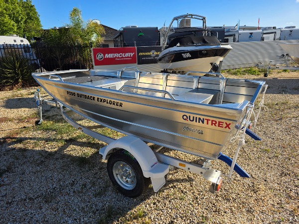 QUINTREX 390 OUTBACK EXPLORER, QUINTREX ALLOY LONG TRAILER YAMAHA 25HP MAN START FUEL TANK BOAT AND TRAILER REG CASTING PLATFORM FLAT CARPETED FLOOR REAR CARPETED FUEL TANK RACK BRILLIANT BOAT