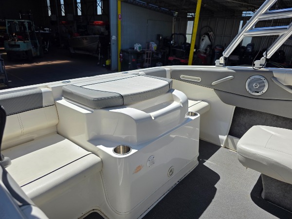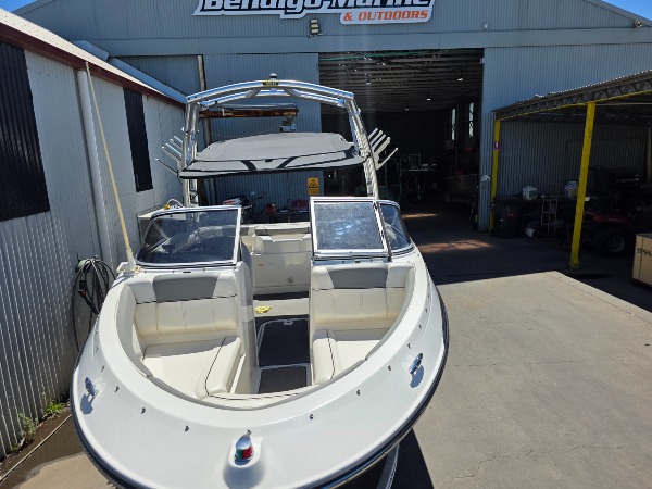 This is a great package to get out onto the water for a ski with friends and family. powered by a Mercruiser 195hp fourstroke. Holds up to 8 people with plenty of seats. Has a full sized boat cover, ski tower and bimini with board racks, Lowrance depth finder, Transom telescopic ladder, speaker system and radio,