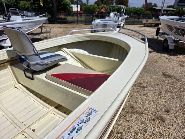 FANTASTIC FISHING PLATFORM IN PERFECT CONDTION, 1 ELDERLY OWNER, JUST HAD FULL SERVICE, COMES WITH SOUNDER AND COVER AND MORE SEAT PADS. BOAT AND TRAILER BOTH REGISTERED
