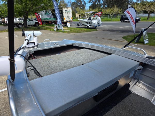Thanks to the Fighter Series hull, the 390 Explorer boasts wider chines than traditional v-nose punts, delivering improved stability at rest and extra storage room for your fishing gear. The sharper entry point delivers an impressively soft riding hull.